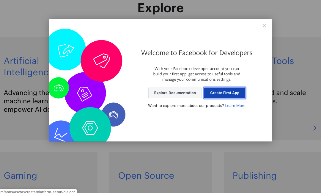 In cazul in care ati dat click pe GetStarted ajungeti pe o pagina similara cu cea de mai jos si accesati Create First App:
